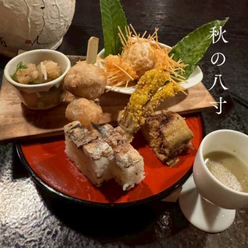 季節の八寸、鮮魚のお造りなど旬の食材を使ったお料理8品のコース